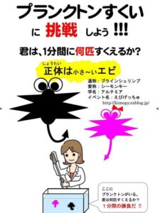 内容:水槽内の生きたプランクトンを1分間で何匹すくえるか。