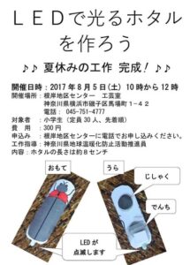 内容:ペーパークラフトのホタルにLEDを取り付ける。